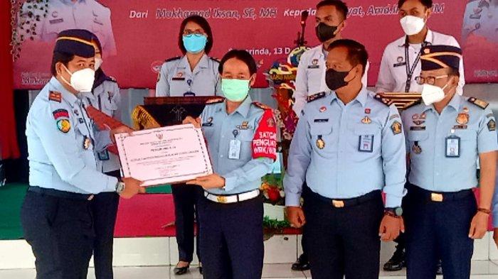 Penghargaan diterima Kepala Kantor Imigrasi Kelas I TPI Balikpapan, Rakha Sukma Purnama di Aula Lapas Narkotika Kelas IIA Samarinda