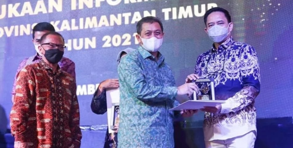 Penghargaan ini diserahkan langsung oleh Wakil Gubernur Kaltim, Hadi Mulyadi didampingi Ketua Komisi Informasi (KI) Pusat Gede Narayana, Selasa (14/12/2021) malam di Samarinda.