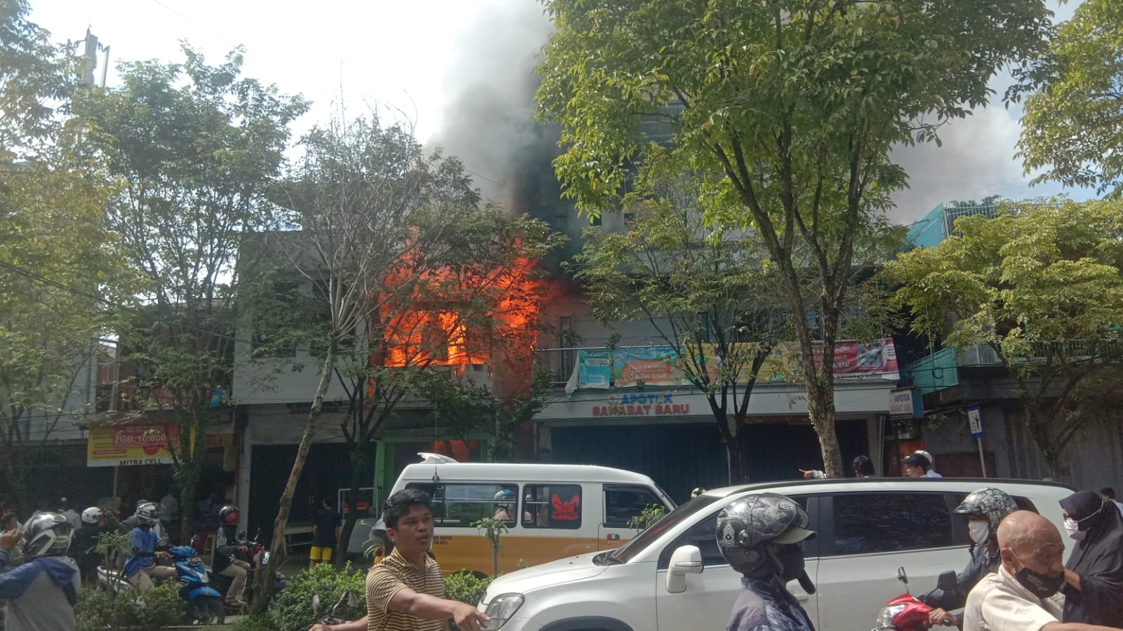 “Saya itu baru aja turun ke bawah, tiba-tiba muncul api dan langsung membesar gitu aja di loteng,” ujar penjual bakso di ruko tersebut.