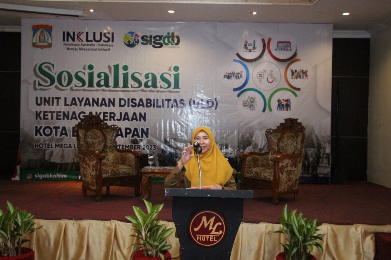 Kepala Disnaker Balikpapan, Ani Mufaidah, menyampaikan saat ini Disnaker Kota Balikpapan menggencarkan sosialisasi atas layanan disabilitas bidang ketenagakerjaan yang diselenggarakan oleh Sasana Inklusi dan Gerakan Advokasi Difabel (Sigab).