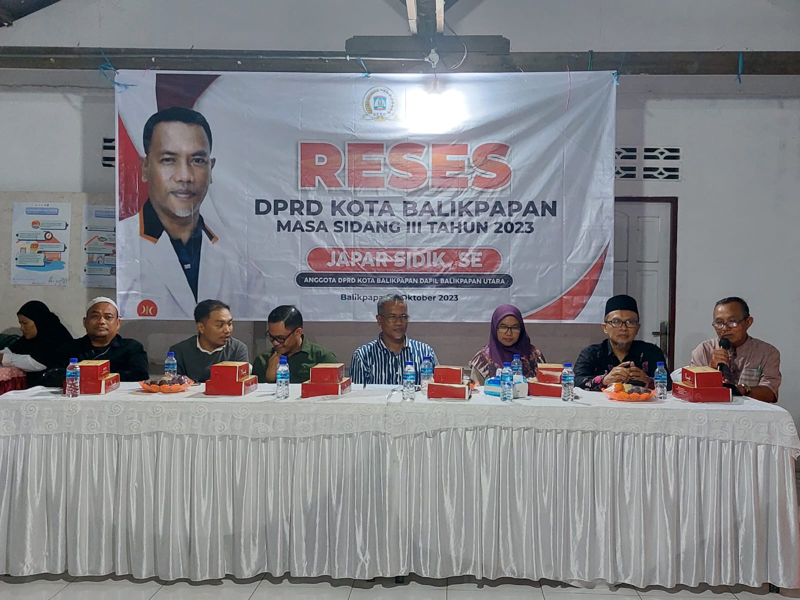 Reses perdana Anggota Komisi III DPRD Balikpapan Japar Sidik,SE bertempat di Balai Desa RT.14 Jalan Batu Ratna,Kelurahan Karang Joang ,Balikpapan Utara,Rabu (25/10/2023).