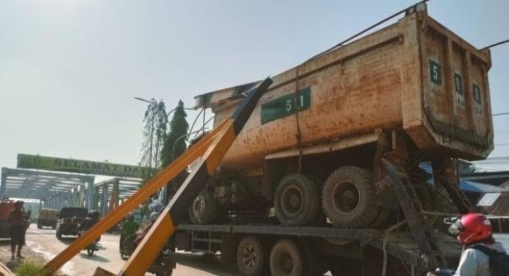 Truk Sangkut Portal Pembatas Dishub Kutim Minta Sopir Bertanggung Jawab Atas Kerusakan