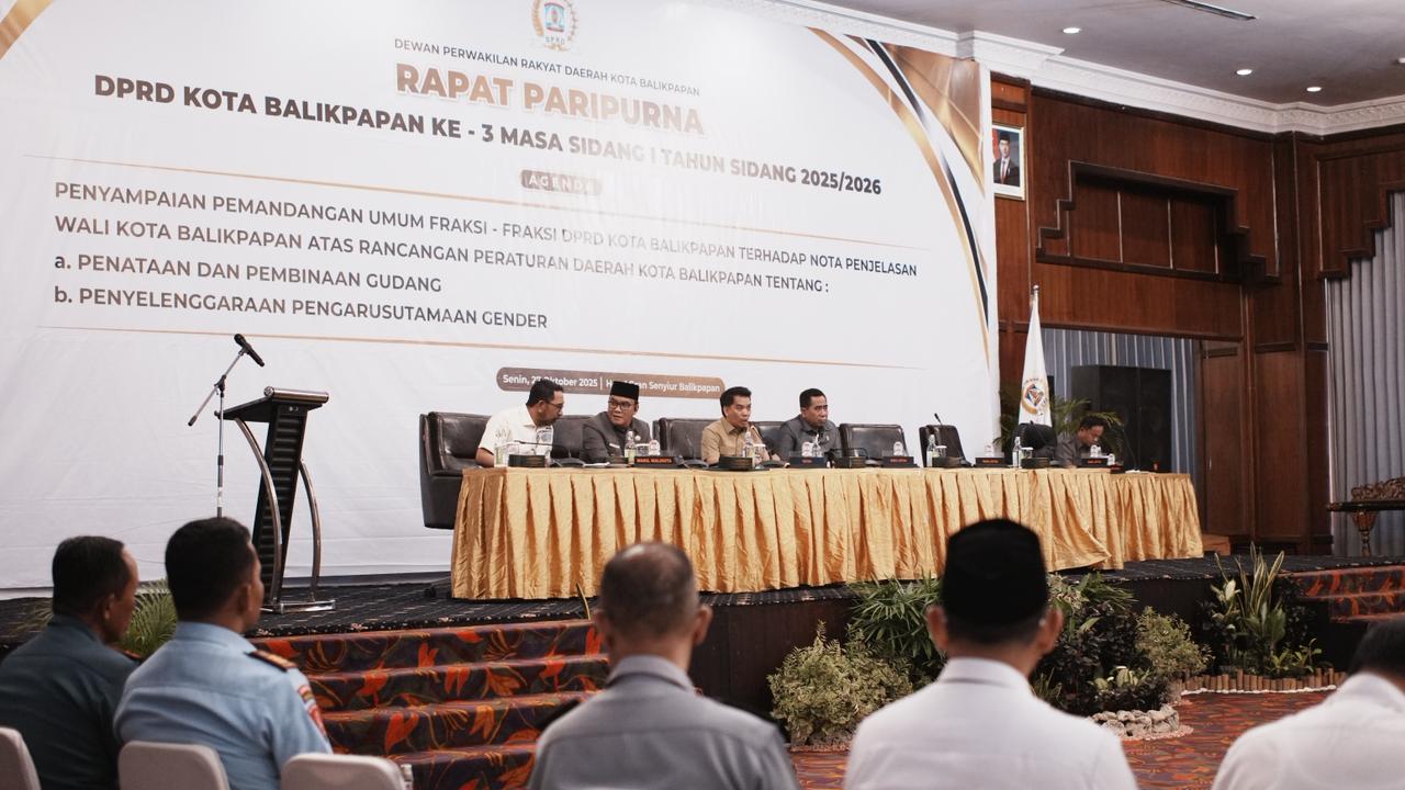 “Raperda ini penting untuk memastikan keberadaan gudang tertata sesuai peruntukan, tata ruang, serta jenis dan fungsi barang yang disimpan,” ujarnya dalam rapat Paripurna Pandangan Umum Dewan, pada Senin (27/10/2025).